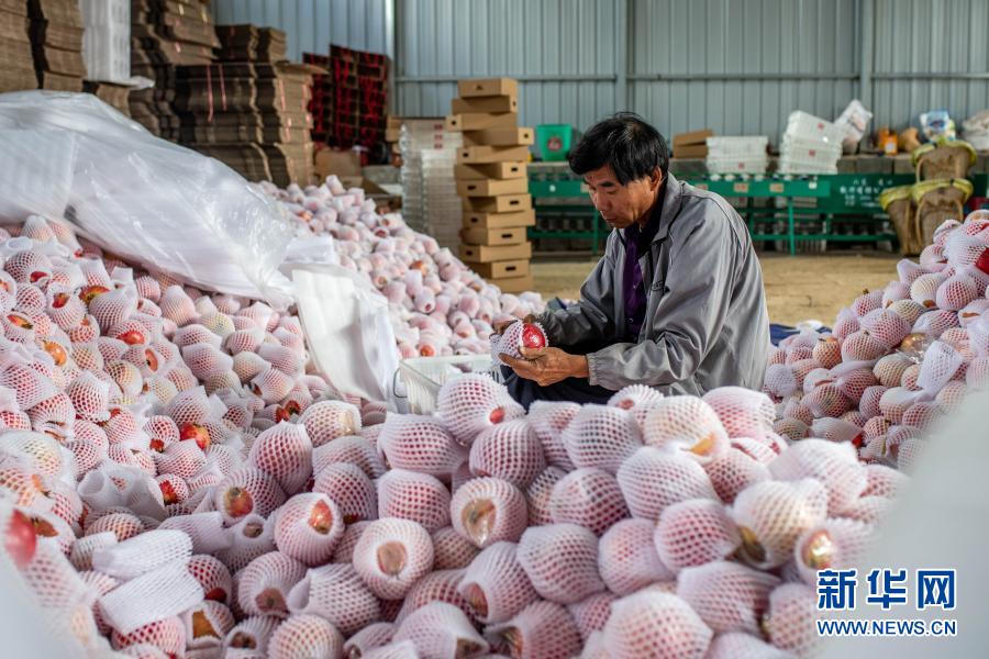 云南省會(huì)澤縣娜姑鎮(zhèn)牛泥塘村童盟種植專(zhuān)業(yè)合作社的農(nóng)民在分揀石榴(2020年9月29日攝)。新華社記者 胡超 攝