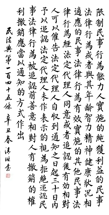 “書·法”活動以書寫《中華人民共和國民法典》法條開筆,未來將對準更多的法律。