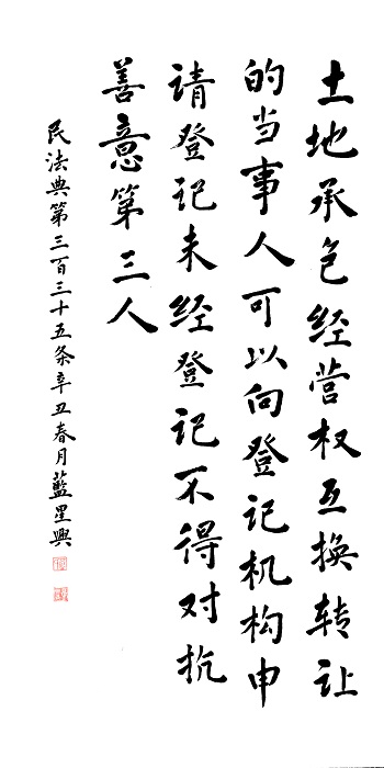民法典第三百三十五條 土地承包經(jīng)營(yíng)權(quán)互換、轉(zhuǎn)讓的,當(dāng)事人可以向登記機(jī)構(gòu)申請(qǐng)登記;未經(jīng)登記,不得對(duì)抗善意第三人。