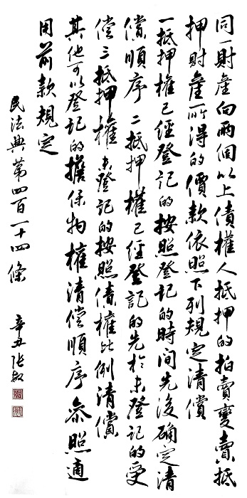 民法典第四百一十四條 同一財(cái)產(chǎn)向兩個(gè)以上債權(quán)人抵押的,拍賣、變賣抵押財(cái)產(chǎn)所得的價(jià)款依照下列規(guī)定清償: