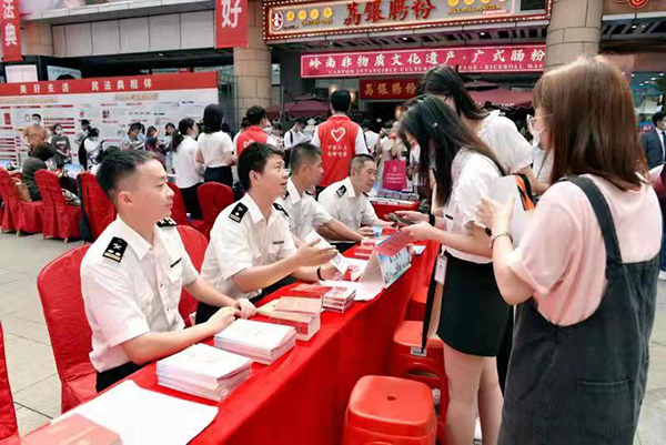 5月28日上午,海南省普治辦、省司法廳聯(lián)合??谑衅罩无k、??谑兴痉ň?、海南電網(wǎng)有限責(zé)任公司、??诤jP(guān)、省水務(wù)廳、省律師協(xié)會、省消防救援總隊在??谑腥赵聫V場開展民法典集中普法宣傳活動。27家省直和海口市直單位在活動現(xiàn)場擺放民法典展板、設(shè)置法律服務(wù)咨詢臺,為群眾提供法律咨詢服務(wù),免費(fèi)發(fā)放宣傳資料。當(dāng)天,全省18個市縣還同步組織開展開展民法典集中普法宣傳和法律咨詢活動。