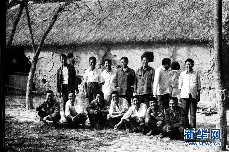 1981年,部分“大包干”帶頭人在茅草屋農(nóng)舍前合影(資料照片)。小崗,這個(gè)被寫在歷史教科書上的村莊,迎來(lái)又一年的豐收。如今的場(chǎng)景讓人難以想象:40多年前,這是一個(gè)吃糧靠返銷、用錢靠救濟(jì)、生產(chǎn)靠貸款的“三靠村”。山鄉(xiāng)巨變,要從當(dāng)年18位莊稼漢的“紅手印”說(shuō)起。新華社發(fā)
