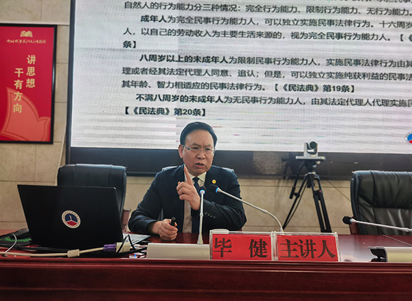 在此次培訓(xùn)會上,中國企聯(lián)維權(quán)工委委員、貴州省人民政府立法咨詢專家畢健為參會人員作了以“民法典中招商引資合同法、公司法的運用及案例解析”為主題的《民法典》學(xué)習(xí)輔導(dǎo)暨法治講座。畢健從《民法典》之法律概念和法律意識、《民法典》之制定歷程和重要意義、《民法典》之主要內(nèi)容和亮點特色、《民法典》之與年齡相關(guān)的自然人制度、《民法典》之法人制度、《民法典》之與鄉(xiāng)村振興相關(guān)制度等六個方面進(jìn)行深入淺出的講解,特別針對政府招商引資合同存在的風(fēng)險與防范作了詳細(xì)的分析講解。參會人員紛紛表示獲益匪淺,希望政府多組織這樣的培訓(xùn)學(xué)習(xí)。