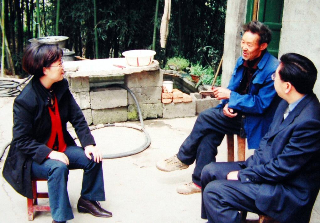 王瑛(左)生前下鄉(xiāng)與群眾交談,共商致富之策。(資料照片)