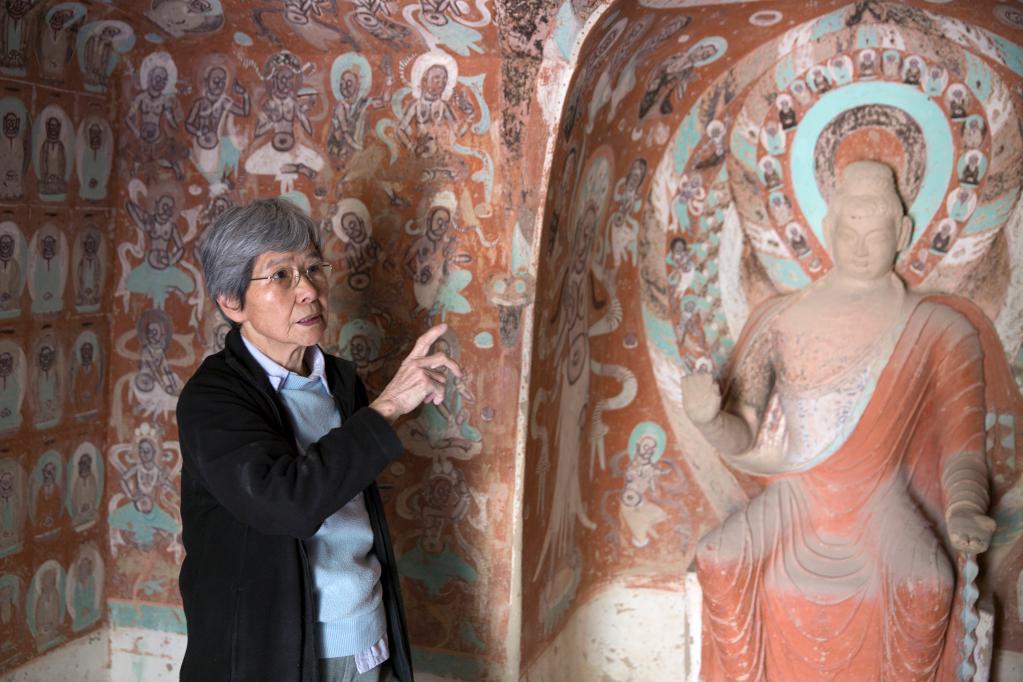 她是敦煌研究院名譽(yù)院長(zhǎng)樊錦詩(shī)。1938年,祖籍杭州的樊錦詩(shī)出生在北京,自1963年大學(xué)畢業(yè)后,她便開(kāi)始了與莫高窟長(zhǎng)達(dá)半個(gè)多世紀(jì)的相守。在她和同事的努力下,莫高窟在1987年成為中國(guó)首批進(jìn)入世界文化遺產(chǎn)名錄的遺產(chǎn)地,并逐步成為世界文化遺產(chǎn)保護(hù)和利用的全球典范。
