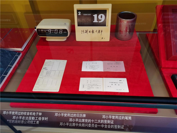 鄧小平使用過的日歷牌、收音機(jī)電子鐘、筆筒等。日歷牌上,留有鄧小平清晰的字跡“法制日報(bào)十周年”。
