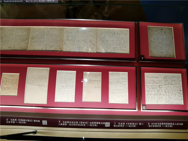 馬克思《布魯塞爾筆記》第四筆記本手稿(原稿);1876年馬克思和燕妮致友人托馬斯?奧爾索普的信等。