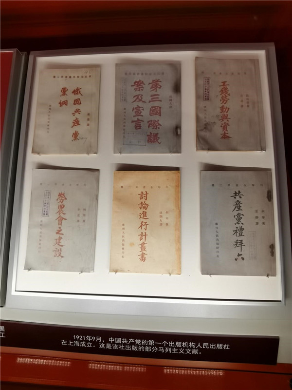 1921年9月,中國共產(chǎn)黨的第一個出版機(jī)構(gòu)人民出版社在上海成立,這是該社出版的部分馬列主義文獻(xiàn)。