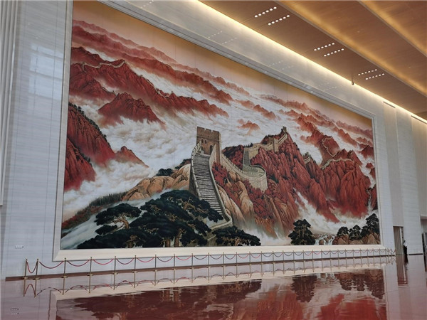黨史展覽館大廳的長城主題漆畫