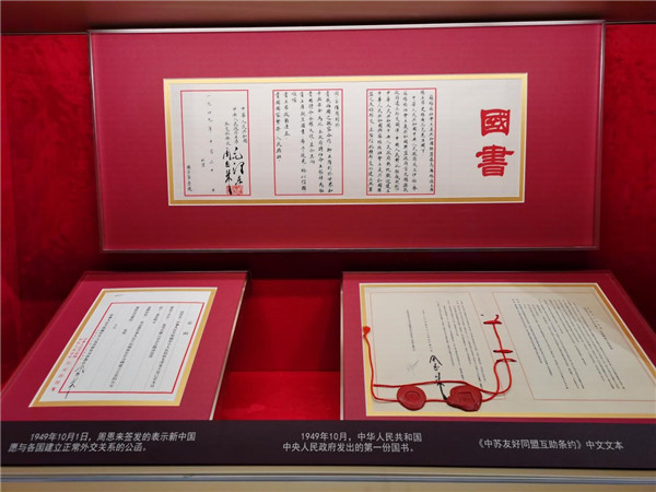 1949年10月,中華人民共和國中央人民政府發(fā)出的第一份國書;1949年10月1日,周恩來簽發(fā)的表示新中國愿與各國建立正常外交關(guān)系的公函。