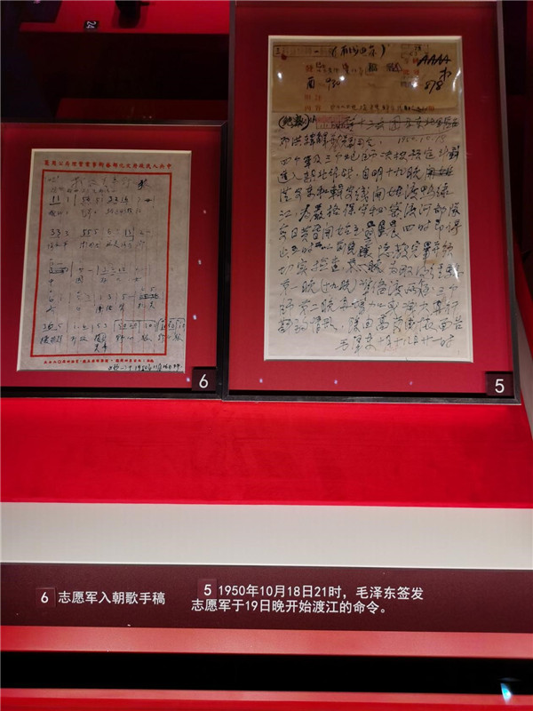 1950年10月18日 21時,毛澤東簽發(fā)志愿軍于19日晚開始渡江的命令;志愿軍入朝歌手稿。