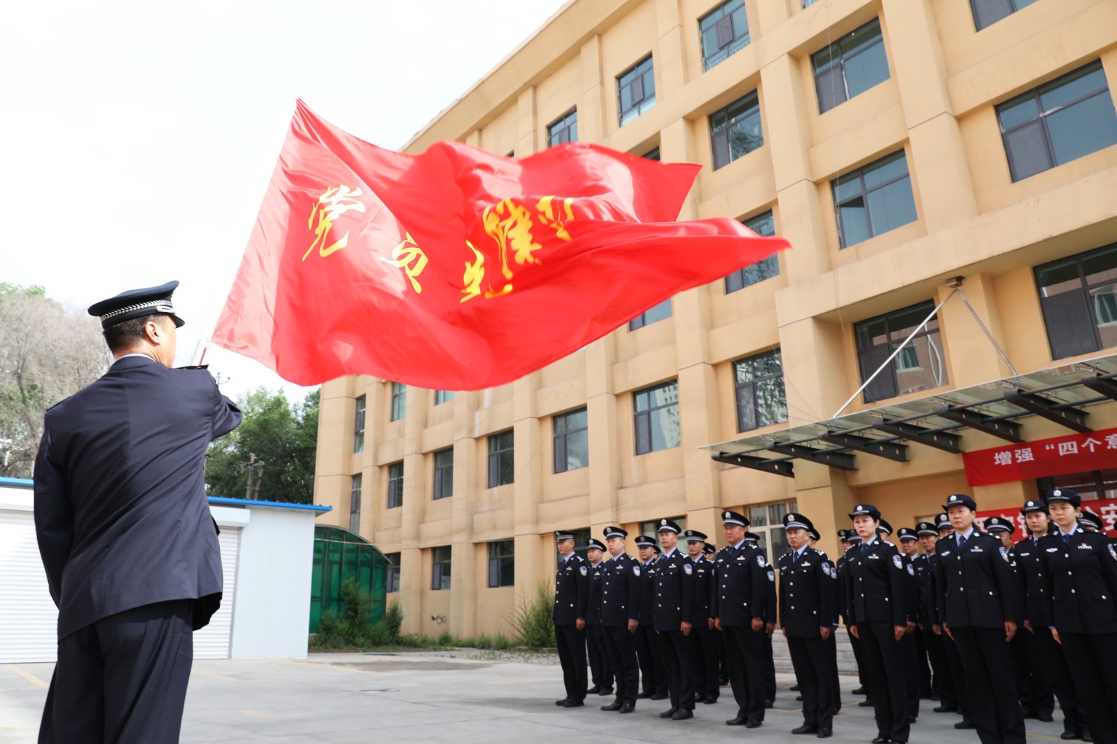 朱光輝率領(lǐng)誓師大會全體人員舉起右拳,面對黨旗莊嚴(yán)宣誓:在慶祝建黨100周年安保工作中,始終牢記“對黨忠誠、服務(wù)人民、執(zhí)法公正、紀(jì)律嚴(yán)明”總要求,以黨和人民為念,以維護安全為重,堅持最高標(biāo)準(zhǔn),堅定必勝信心,全力投入、全力以赴,堅決打贏建黨100周年安保硬仗,確保絕對安全!