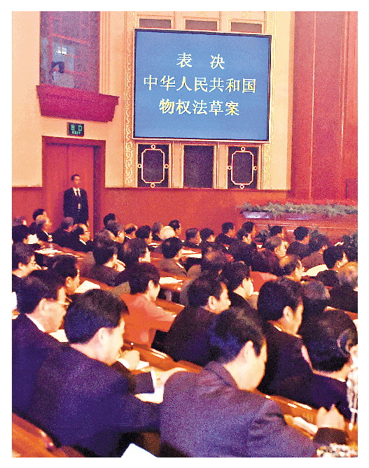 2007年3月,十屆全國(guó)人大五次會(huì)議通過(guò)《中華人民共和國(guó)物權(quán)法》,對(duì)于堅(jiān)持和完善國(guó)家基本經(jīng)濟(jì)制度、保護(hù)權(quán)利人的物權(quán)、加快構(gòu)建社會(huì)主義和諧社會(huì),具有十分重要的意義。(資料圖片)