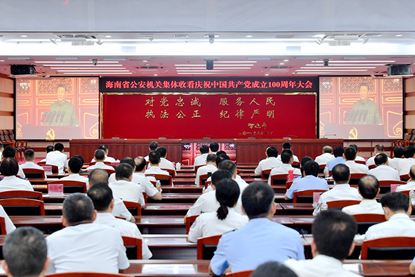 奮斗百年路,啟航新征程。7月1日上午8時,慶祝中國共產(chǎn)黨成立100周年大會在北京天安門廣場隆重舉行。海南省公安機(jī)關(guān)在做好各項(xiàng)安保任務(wù)的同時,組織民警集中收聽收看大會盛況。副省長、公安廳黨委書記、廳長閆希軍在省公安廳主會場收聽收看大會實(shí)況。