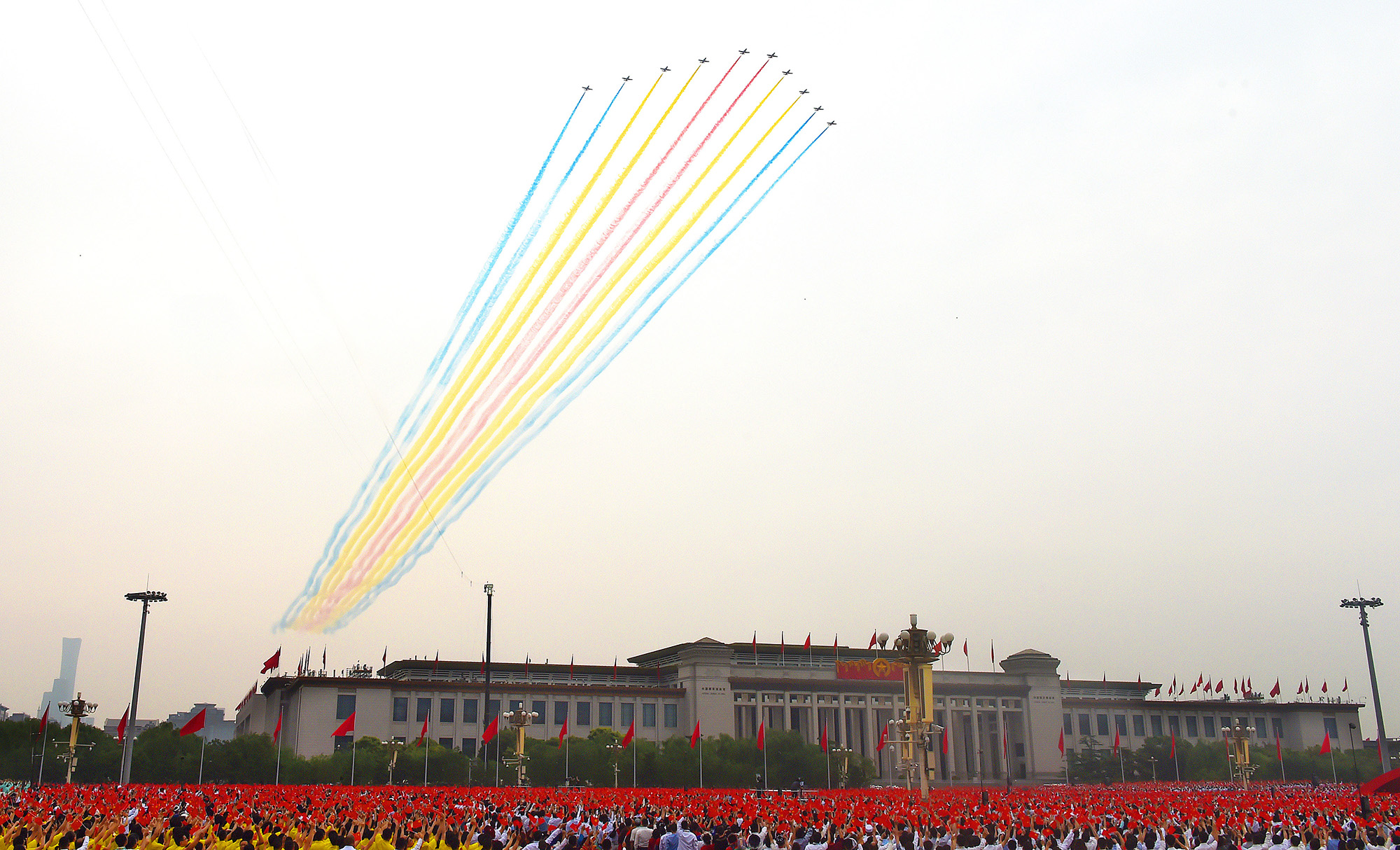 7月1日上午8時,慶祝中國共產(chǎn)黨成立100周年大會在北京天安門廣場隆重舉行。這是飛行慶祝表演。