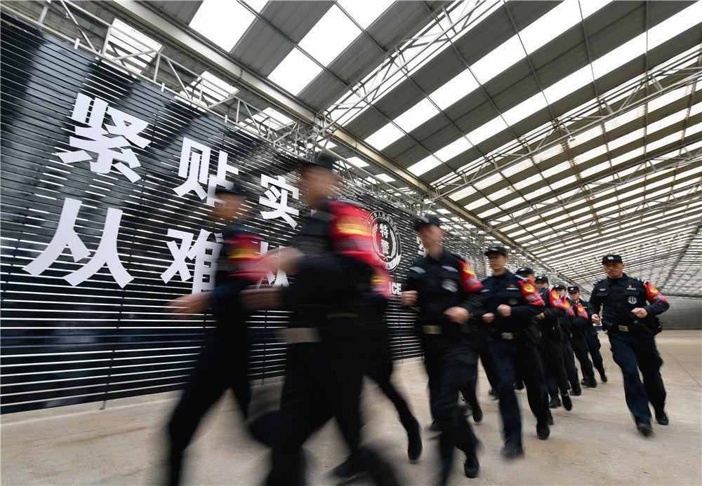 “漳州110”民警們在訓練基地進行基礎體能訓練(1月7日攝)?!罢闹?10”是人民群眾對福建省漳州市公安局巡特警支隊直屬大隊的簡稱。自1990年8月成立以來,這個代號守護了當?shù)匕傩?0余年。新華社記者 魏培全 攝