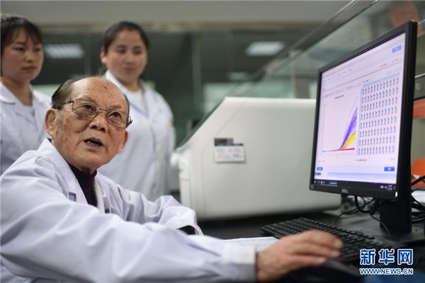 6月17日,吳天一(右二)在青海西寧的實驗室內(nèi)指導(dǎo)學(xué)生。新華社記者 張宏祥 攝