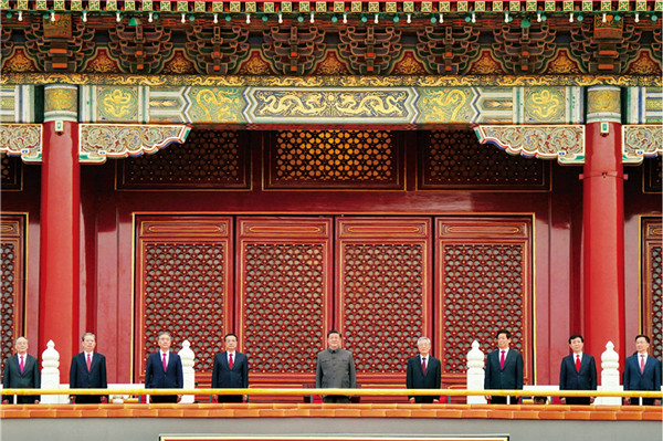 2021年7月1日,慶祝中國共產(chǎn)黨成立100周年大會在北京天安門廣場隆重舉行。習(xí)近平、李克強、栗戰(zhàn)書、汪洋、王滬寧、趙樂際、韓正、王岐山、胡錦濤等出席大會。 新華社記者 殷博古/攝