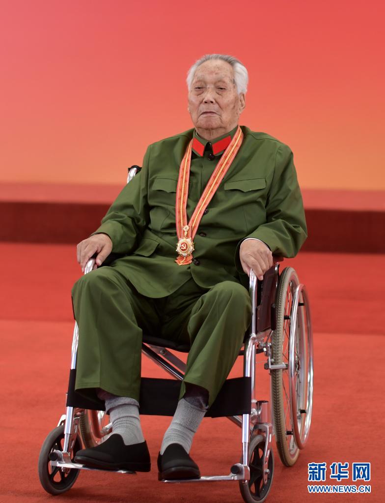 2021年6月29日,101歲的郭瑞祥身著綠軍裝,坐在輪椅上接受了習(xí)近平總書記親自授予的“七一勛章”。