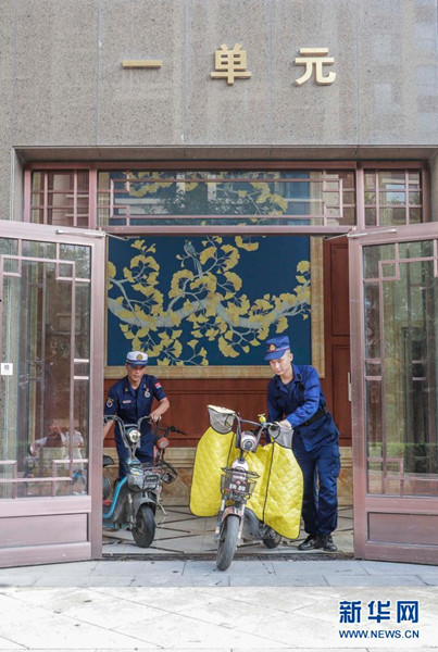 8月1日,消防救援人員在河北省遵化市一住宅小區(qū)樓道清理搬運違規(guī)停放的電動車。