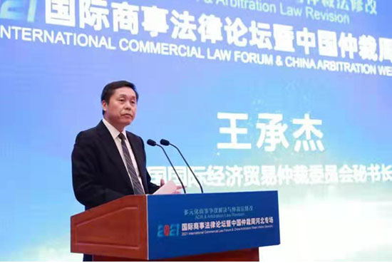 9月17日,2021國(guó)際商事法律論壇暨中國(guó)仲裁周河北專場(chǎng)在河北省石家莊市成功舉辦。由河北省貿(mào)促會(huì)、中國(guó)國(guó)際經(jīng)濟(jì)貿(mào)易仲裁委員會(huì)、中國(guó)國(guó)際貿(mào)易促進(jìn)委員會(huì)調(diào)解中心、河北雄安新區(qū)中級(jí)人民法院、河北省律師協(xié)會(huì)共同主辦。河北省貿(mào)促會(huì)索建杰副會(huì)長(zhǎng)、中國(guó)國(guó)際經(jīng)濟(jì)貿(mào)易仲裁委員會(huì)王承杰副主任兼秘書(shū)長(zhǎng)、中國(guó)國(guó)際貿(mào)易促進(jìn)委員會(huì)調(diào)解中心蔡晨風(fēng)秘書(shū)長(zhǎng)、河北雄安新區(qū)中級(jí)人民法院張曉梅副院長(zhǎng)、河北省律師協(xié)會(huì)張金龍會(huì)長(zhǎng)致辭。