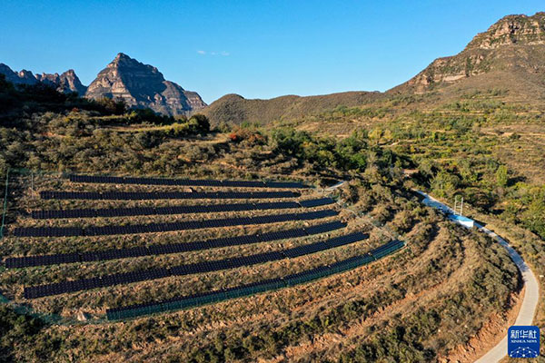 這是2020年10月16日在山西省左權(quán)縣拍攝的一處村級光伏電站(無人機照片)。新華社記者 曹陽 攝