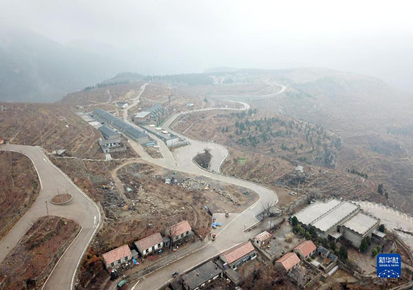 這是在山東省平邑縣地方鎮(zhèn)九間棚村拍攝的道路設施(2018年12月2日攝,無人機照片)。新華社記者 王凱 攝