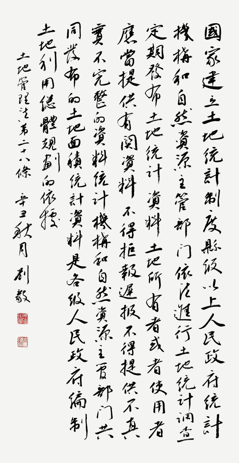 繼1600余位書法家參與書寫《中華人民共和國民法典》全部1260條法條之后,法治日報社聯(lián)合自然資源部法規(guī)司、自然資源部書畫研究會和北京昌平書法家協(xié)會,將筆端對準(zhǔn)土地管理“一法一條例”,即《中華人民共和國土地管理法》和《中華人民共和國土地管理法實施條例》。