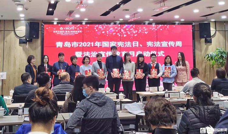 儀式在“我是憲法朗讀者”宣傳片的朗朗誦讀聲中開(kāi)始,劉春穎同志與有關(guān)領(lǐng)導(dǎo)為學(xué)法講法優(yōu)秀代表贈(zèng)送憲法書(shū)籍,并宣布“青島市2021年國(guó)家憲法日、憲法宣傳周暨法治宣傳教育月主題宣傳活動(dòng)正式啟動(dòng)”。