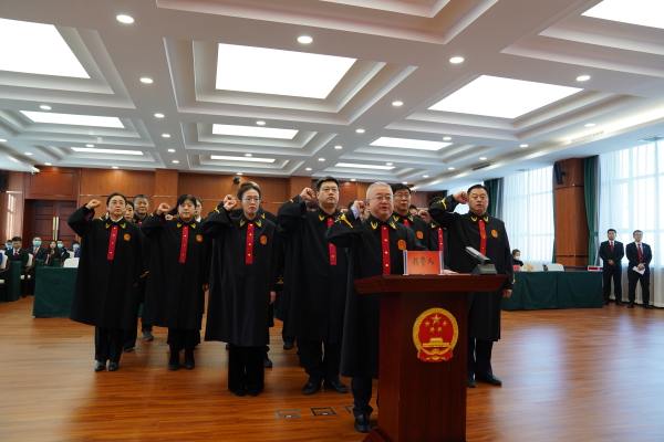 憲法宣誓活動現(xiàn)場,新任職的院領(lǐng)導(dǎo)班子成員、審判委員會委員、審判員,崗位調(diào)整的科級干部,新入額的法官和試用期滿轉(zhuǎn)正人員共計26名干警,在院黨組書記、院長周興志領(lǐng)誓下,舉起右手莊嚴(yán)進(jìn)行憲法宣誓。