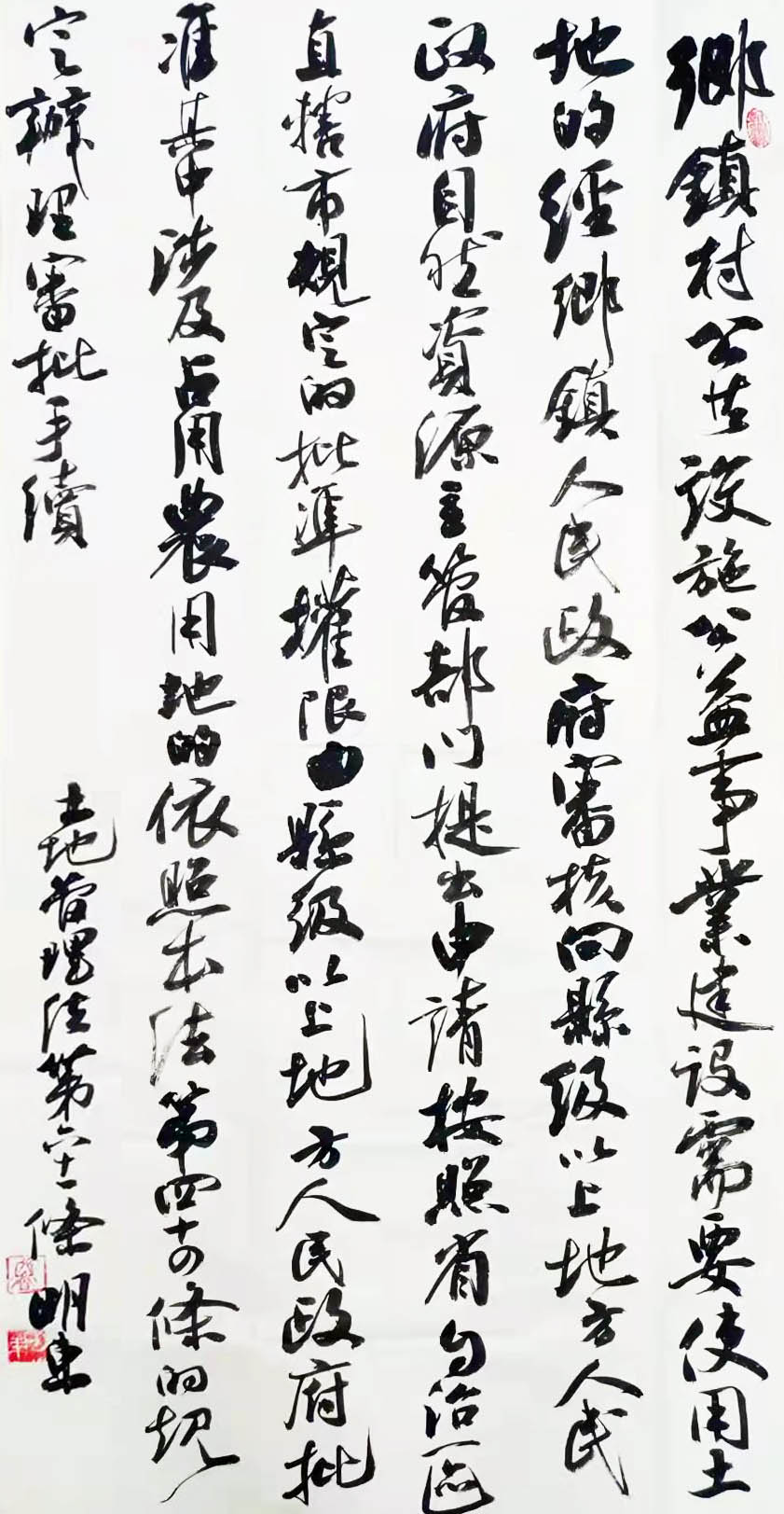 繼1600余位書法家參與書寫《中華人民共和國民法典》全部1260條法條之后,法治日?qǐng)?bào)社聯(lián)合自然資源部法規(guī)司、自然資源部書畫研究會(huì)和北京昌平書法家協(xié)會(huì),將筆端對(duì)準(zhǔn)土地管理“一法一條例”,即《中華人民共和國土地管理法》和《中華人民共和國土地管理法實(shí)施條例》。