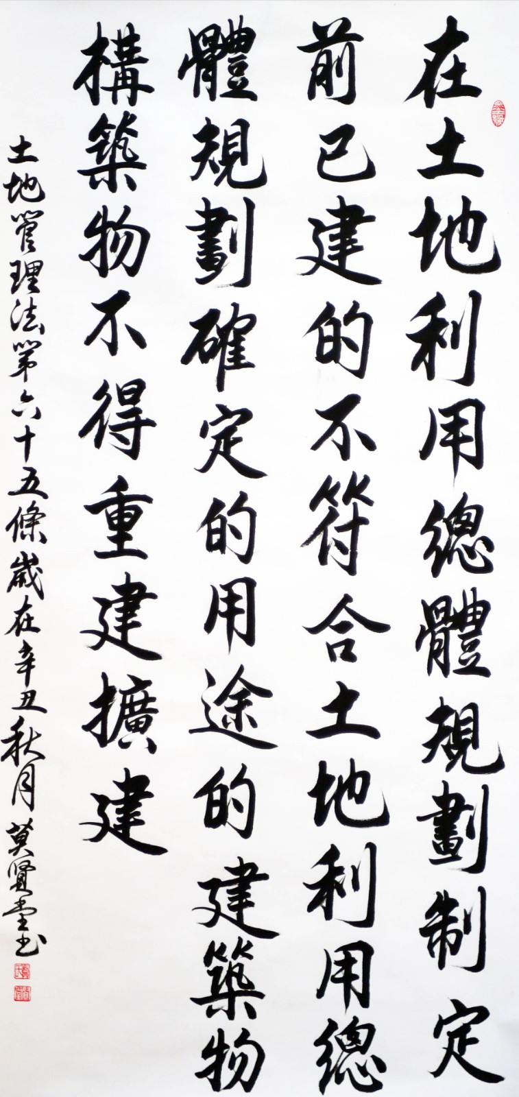 繼1600余位書法家參與書寫《中華人民共和國民法典》全部1260條法條之后,法治日報社聯合自然資源部法規(guī)司、自然資源部書畫研究會和北京昌平書法家協(xié)會,將筆端對準土地管理“一法一條例”,即《中華人民共和國土地管理法》和《中華人民共和國土地管理法實施條例》。