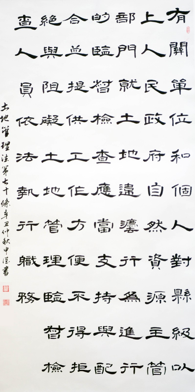 繼1600余位書法家參與書寫《中華人民共和國(guó)民法典》全部1260條法條之后,法治日?qǐng)?bào)社聯(lián)合自然資源部法規(guī)司、自然資源部書畫研究會(huì)和北京昌平書法家協(xié)會(huì),將筆端對(duì)準(zhǔn)土地管理“一法一條例”,即《中華人民共和國(guó)土地管理法》和《中華人民共和國(guó)土地管理法實(shí)施條例》。