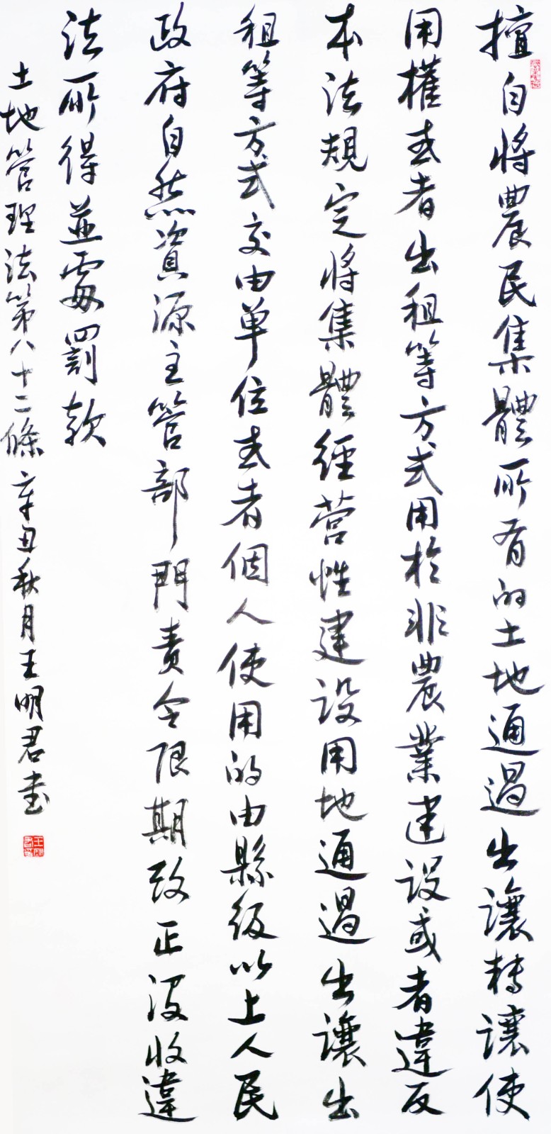 繼1600余位書法家參與書寫《中華人民共和國民法典》全部1260條法條之后,法治日報社聯合自然資源部法規(guī)司、自然資源部書畫研究會和北京昌平書法家協(xié)會,將筆端對準土地管理“一法一條例”,即《中華人民共和國土地管理法》和《中華人民共和國土地管理法實施條例》。