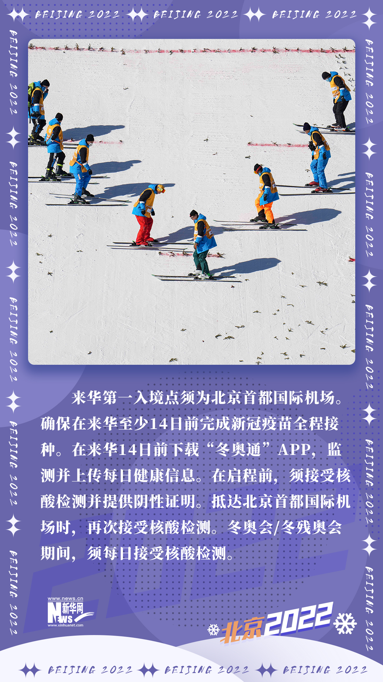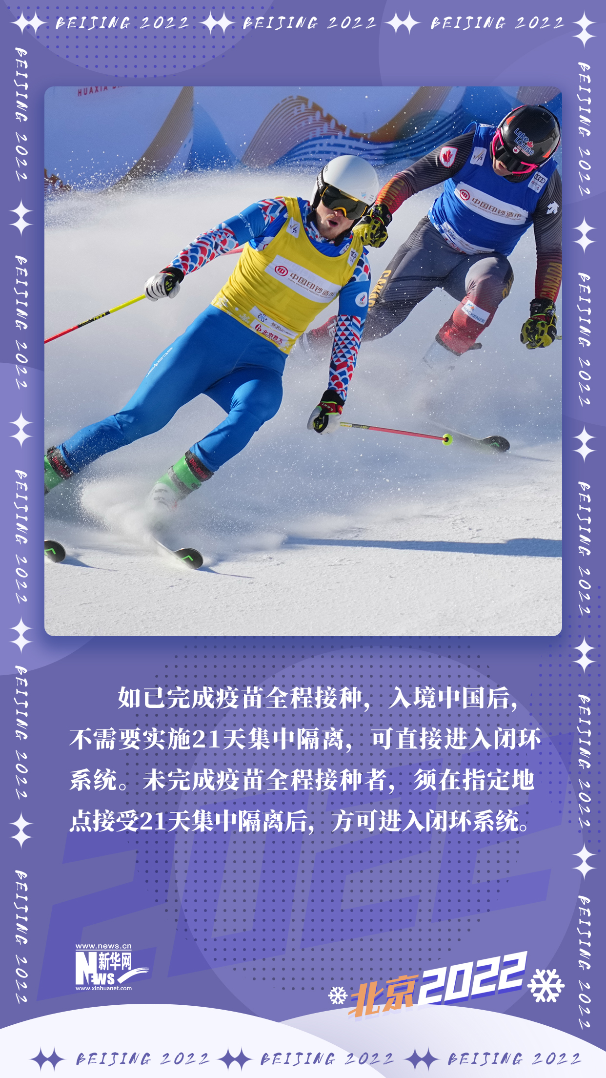 《北京2022年冬奧會和冬殘奧會防疫手冊》第二版日前發(fā)布。與10月發(fā)布的第一版相比,第二版就疫苗接種、海關(guān)入境要求、機(jī)票預(yù)訂、出發(fā)前檢測、冬奧賽時、閉環(huán)管理、住宿、交通、餐飲、核酸檢測、健康監(jiān)測、密接管理以及冬奧會和冬殘奧會轉(zhuǎn)換期等方面,提供了更加細(xì)化的信息。九條關(guān)鍵信息,帶你了解冬奧疫情防控2.0版。