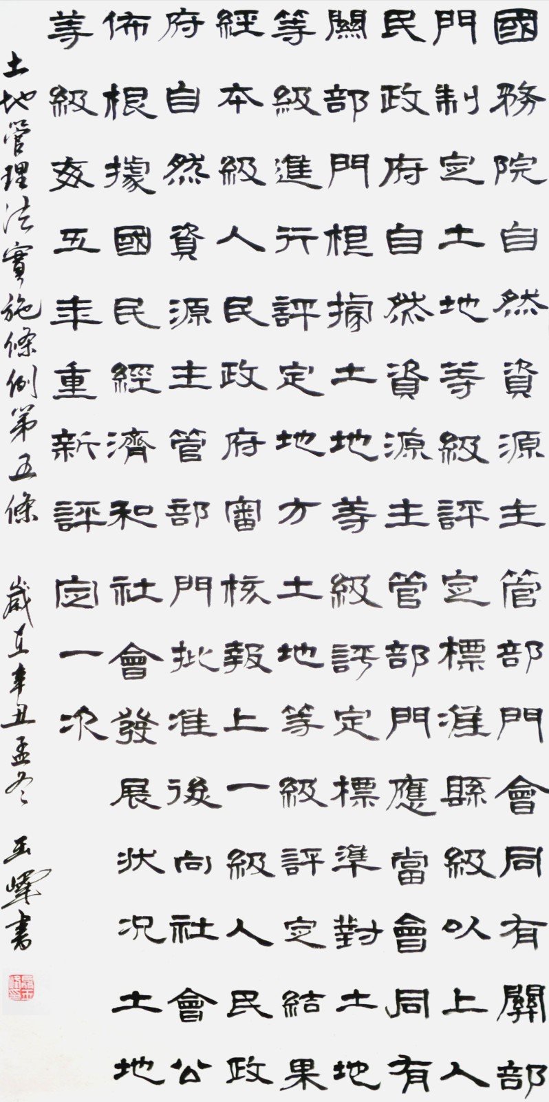 繼1600余位書法家參與書寫《中華人民共和國民法典》全部1260條法條之后,法治日報社聯合自然資源部法規(guī)司、自然資源部書畫研究會和北京昌平書法家協會,將筆端對準土地管理“一法一條例”,即《中華人民共和國土地管理法》和《中華人民共和國土地管理法實施條例》。
