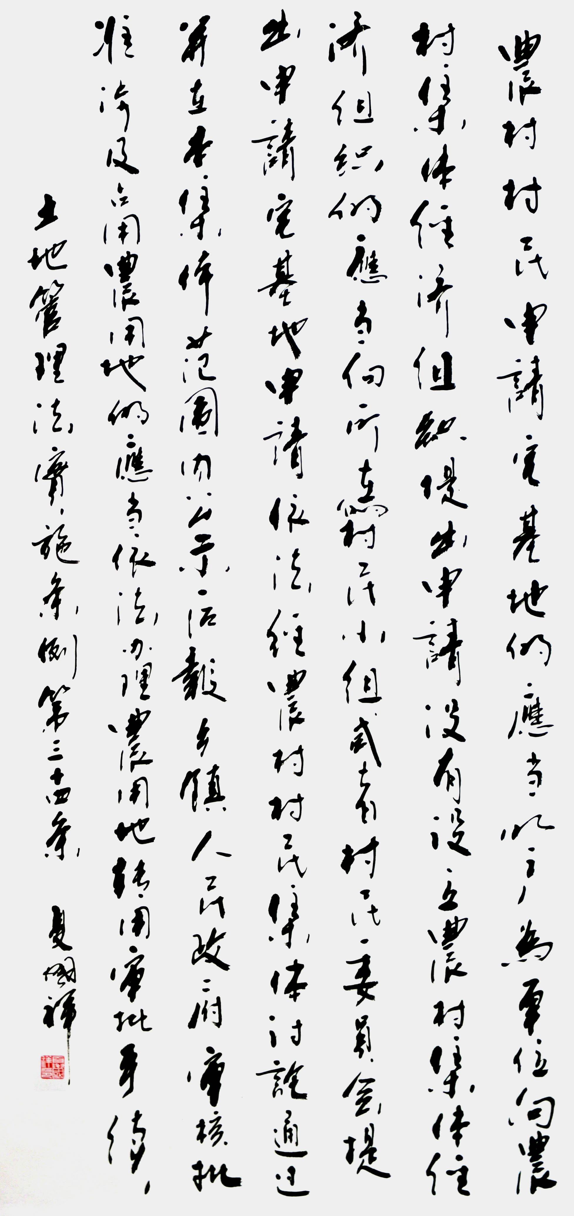 繼1600余位書(shū)法家參與書(shū)寫(xiě)《中華人民共和國(guó)民法典》全部1260條法條之后,法治日?qǐng)?bào)社聯(lián)合自然資源部法規(guī)司、自然資源部書(shū)畫(huà)研究會(huì)和北京昌平書(shū)法家協(xié)會(huì),將筆端對(duì)準(zhǔn)土地管理“一法一條例”,即《中華人民共和國(guó)土地管理法》和《中華人民共和國(guó)土地管理法實(shí)施條例》。
