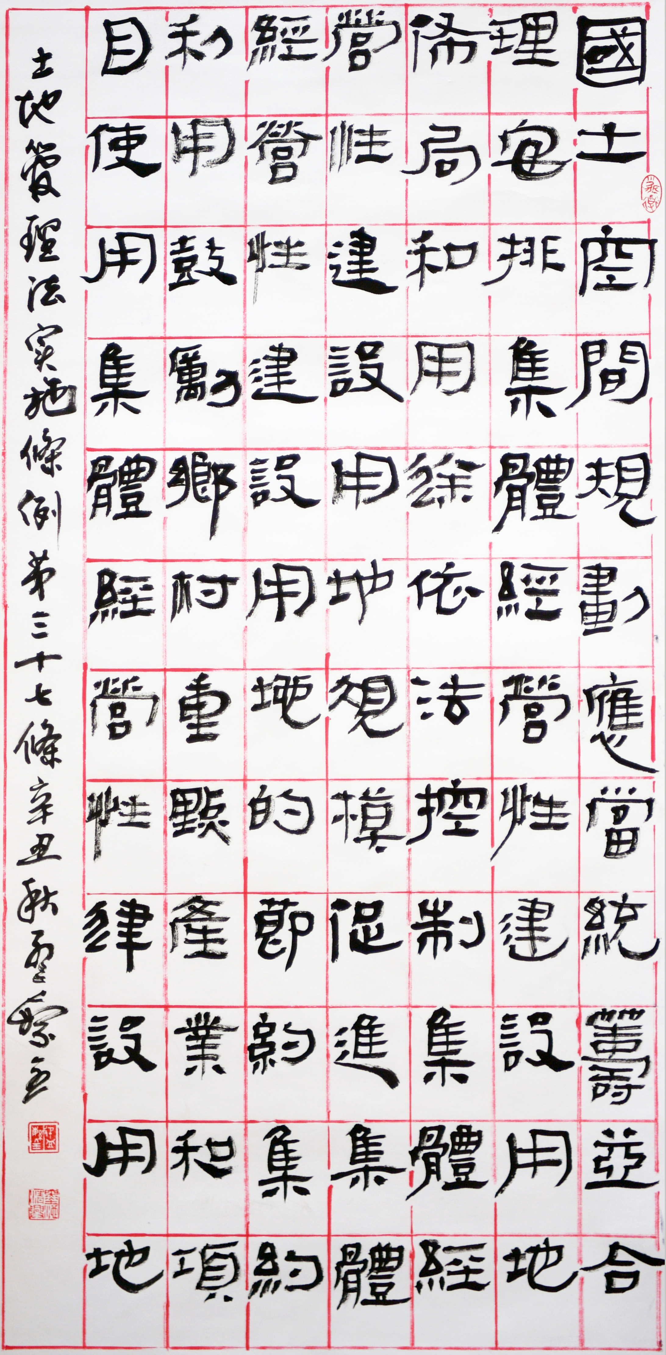 繼1600余位書(shū)法家參與書(shū)寫《中華人民共和國(guó)民法典》全部1260條法條之后,法治日?qǐng)?bào)社聯(lián)合自然資源部法規(guī)司、自然資源部書(shū)畫研究會(huì)和北京昌平書(shū)法家協(xié)會(huì),將筆端對(duì)準(zhǔn)土地管理“一法一條例”,即《中華人民共和國(guó)土地管理法》和《中華人民共和國(guó)土地管理法實(shí)施條例》。