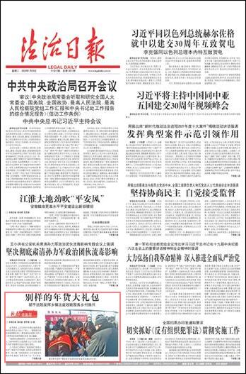 “俺要的這副春聯(lián)好,過年貼到家里大門上?!?4歲的村民王大姐指著“江山千古秀 祖國(guó)萬年春”的春聯(lián)對(duì)《法治日?qǐng)?bào)》記者說。