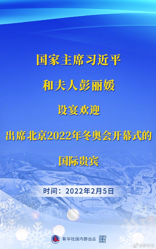 習近平和彭麗媛設宴歡迎出席北京2022年冬奧會開幕式的國際貴賓