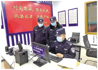 圖為彭場(chǎng)派出所民警將除夕處警情況錄入電腦。