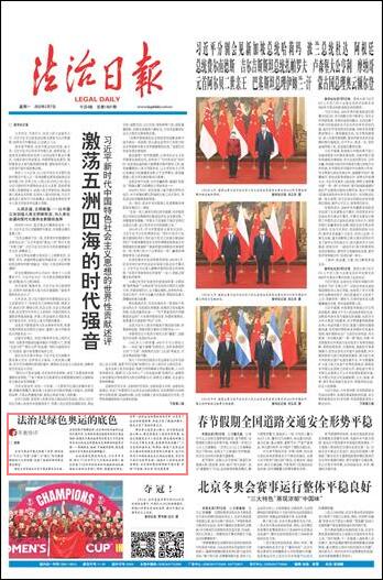法治是綠色奧運的底色。以北京市為例,修訂了《北京市大氣污染防治條例》,制定實施了《北京市機動車和非道路移動機械排放污染防治條例》;同時,構(gòu)建國內(nèi)領(lǐng)先、世界一流的生態(tài)環(huán)境標(biāo)準(zhǔn)體系等。正是有了法治的堅強保障,科技才有了賦能的舞臺,綠色才有了落地的著力點。