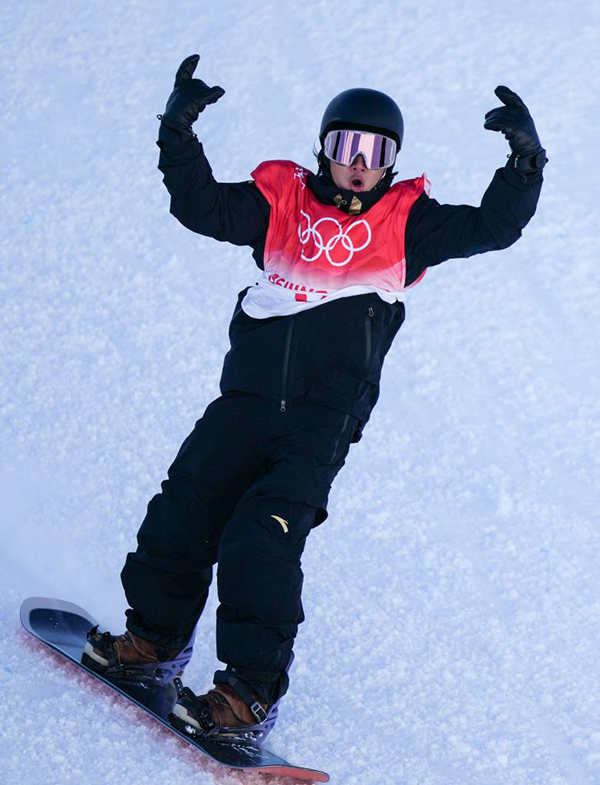 2月6日,中國選手蘇翊鳴在比賽中。當(dāng)日,北京2022年冬奧會單板滑雪項(xiàng)目男子坡面障礙技巧資格賽在張家口云頂滑雪公園舉行。新華社記者薛玉斌攝