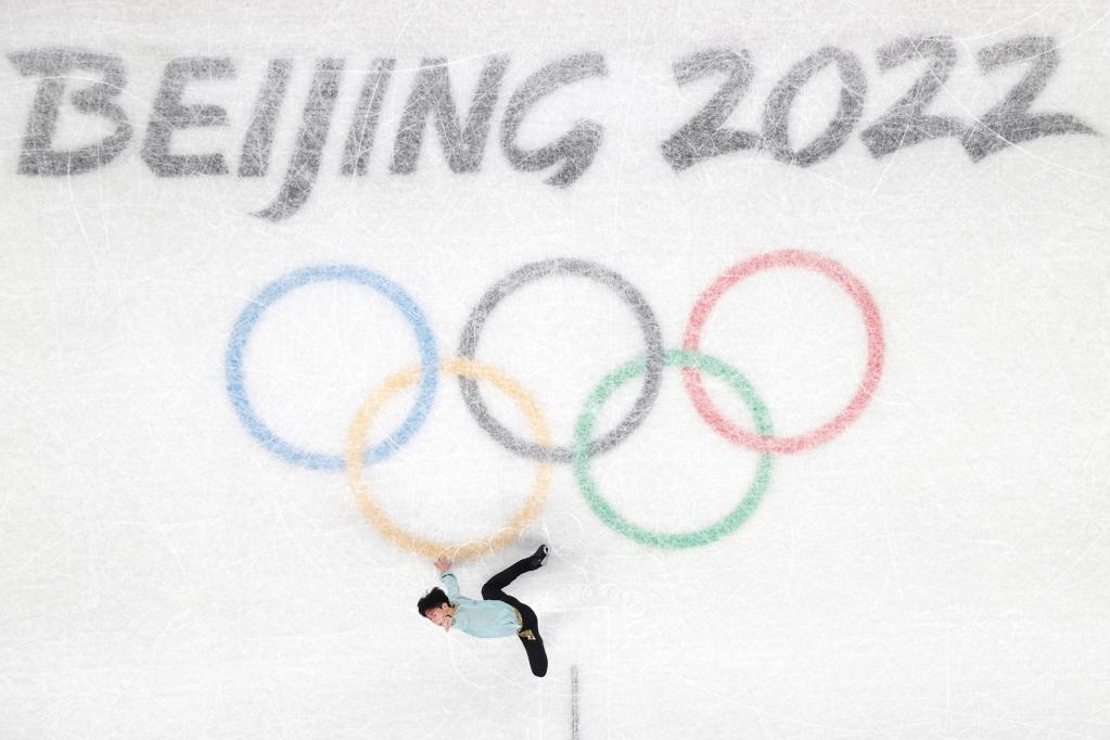 2月8日,中國(guó)選手金博洋在北京冬奧會(huì)花樣滑冰男子單人滑短節(jié)目比賽中。新華社記者鞠煥宗攝