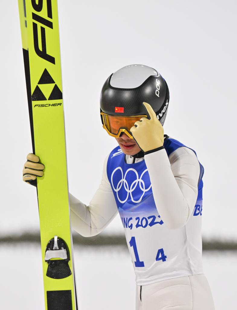 2月6日,中國選手趙嘉文在北京2022年冬奧會跳臺滑雪混合團體比賽中。新華社記者姜克紅攝