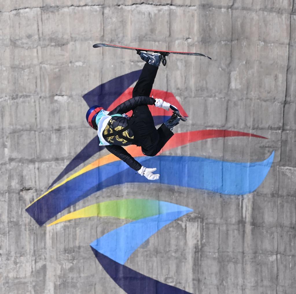 2月10日,北京2022年冬奧會單板滑雪女子U型場地技巧決賽在張家口云頂滑雪公園舉行,中國選手蔡雪桐在比賽中。新華社記者吳壯攝