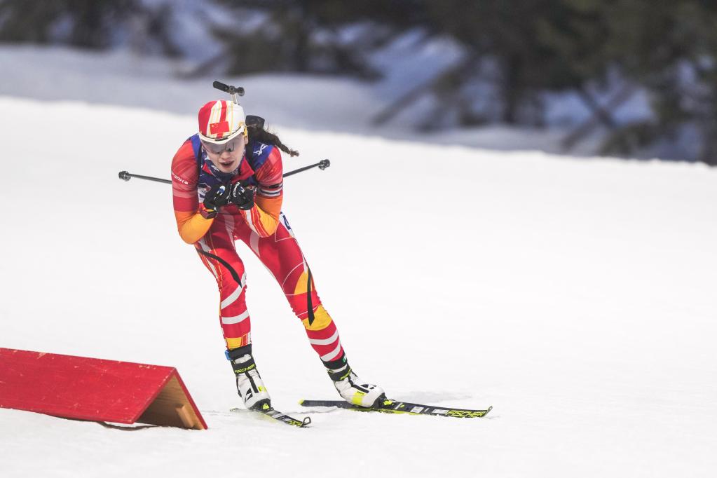 2月11日,中國選手唐佳琳在北京冬奧會冬季兩項女子7.5公里短距離比賽中。新華社記者彭子洋攝