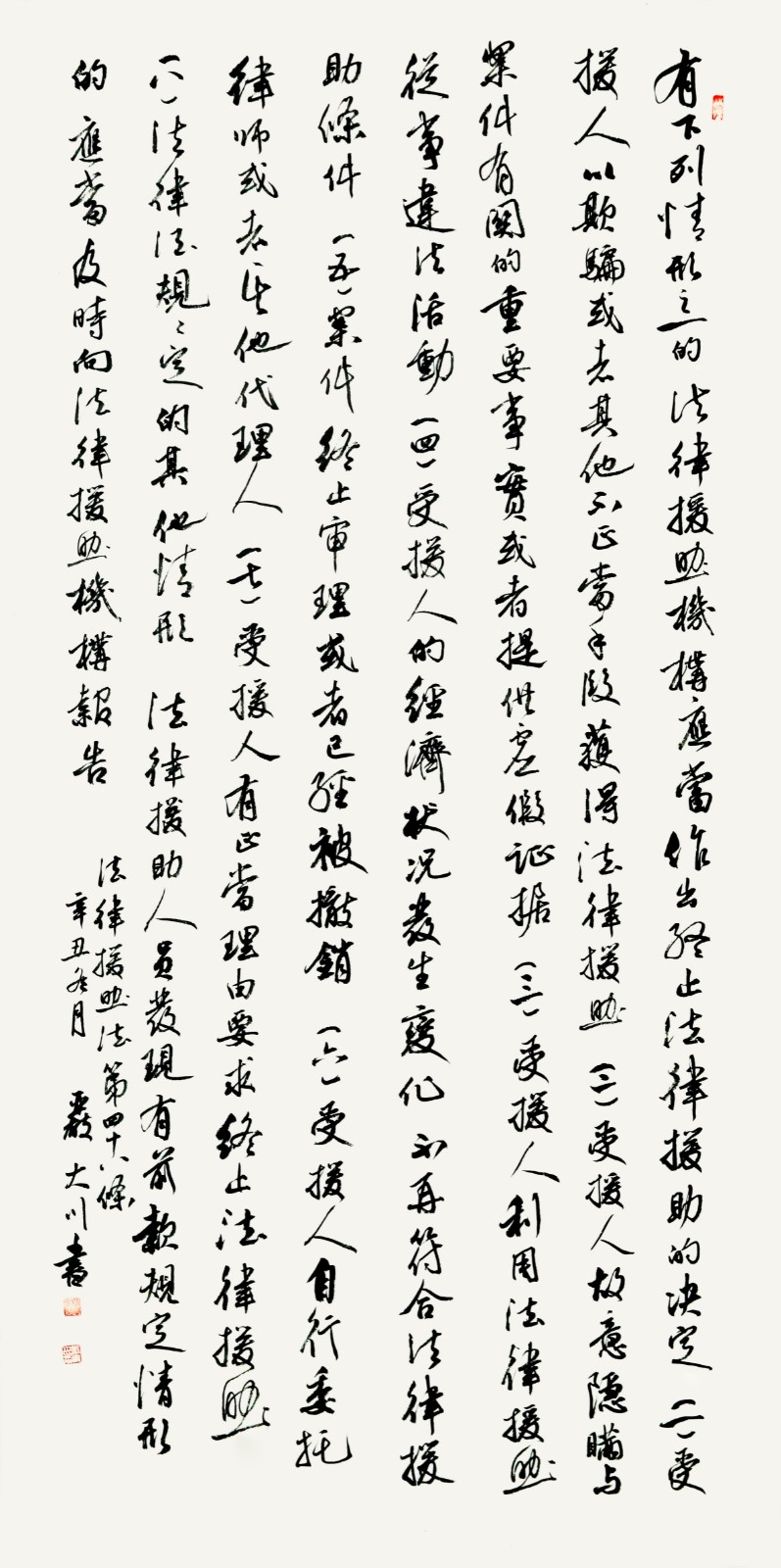 法律援助法第四十八條 有下列情形之一的,法律援助機構應當作出終止法律援助的決定: