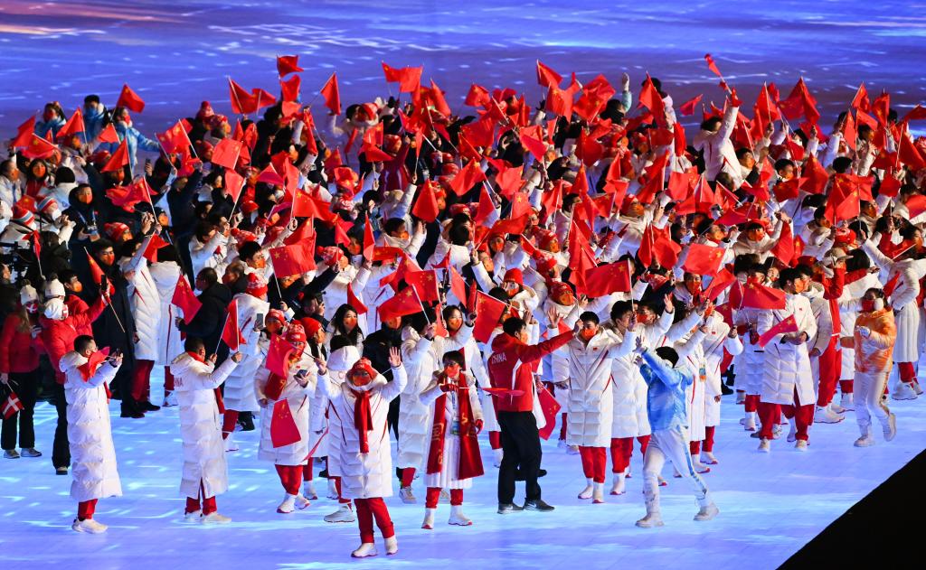 2月20日晚,北京第二十四屆冬季奧林匹克運(yùn)動(dòng)會(huì)閉幕式上中國(guó)代表團(tuán)成員入場(chǎng)。新華社記者 熊琦 攝