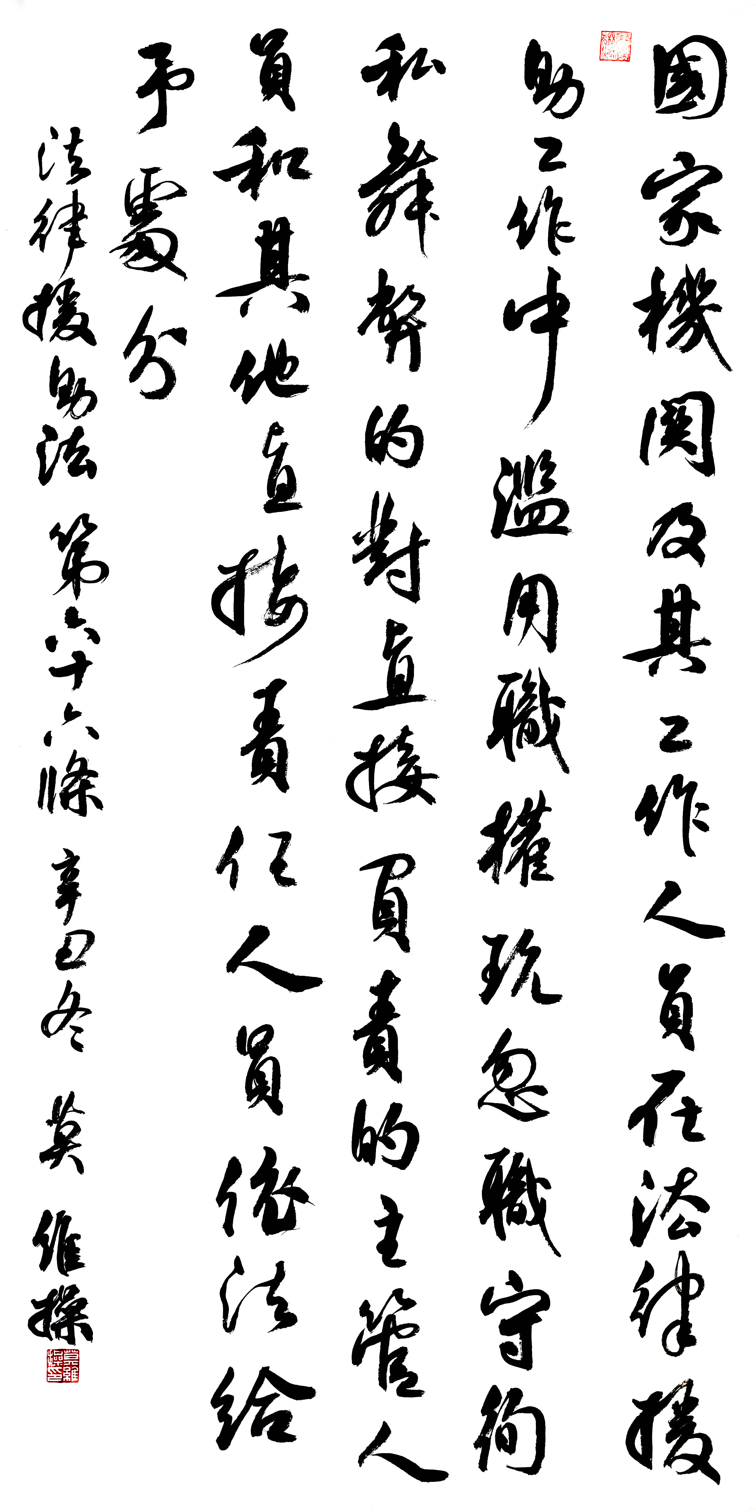 “書·法”活動旨在為創(chuàng)新法治宣傳教育,多開一點(diǎn)腦洞、多花一點(diǎn)心思、多出一點(diǎn)力量、多做一點(diǎn)貢獻(xiàn),引領(lǐng)和推動更多的人拿起筆來學(xué)法、寫法,在不斷“書·法”過程中,提升自身的法治素養(yǎng),在全社會弘揚(yáng)法治精神。